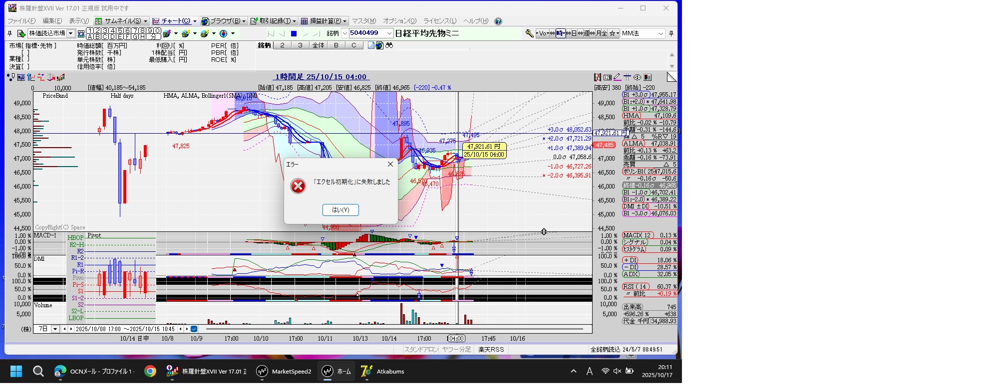 この状態で株羅針盤を起動させても 「エクセル初期化」に失敗しましたのエラーメッセージが表示され取得出来ません。