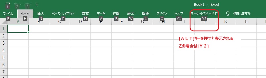 1.空のExcelを立ち上げ、[ALT]キーをクリックする