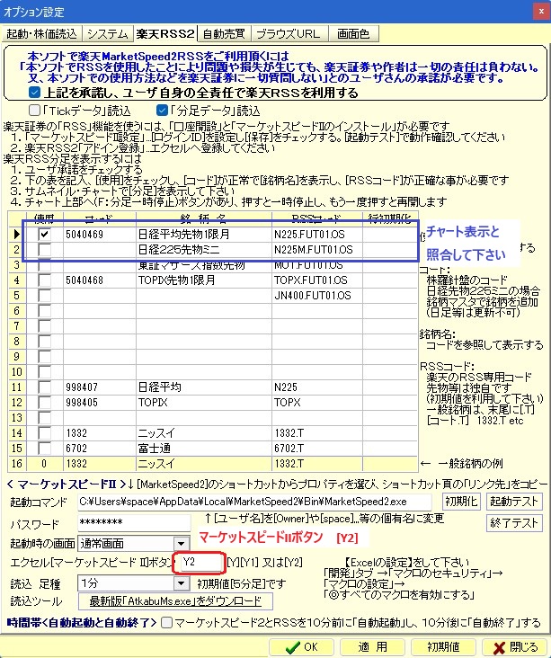 エクセル[マーケットスピードII]ボタン項目へ[Y2]等を入力する