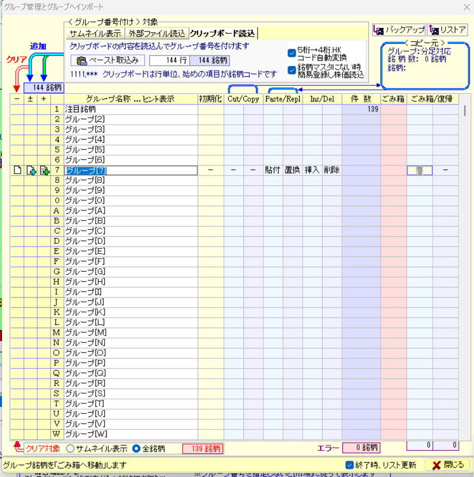 クリップボード読み込みで、銘柄をグループにインポートしたが全部読み込めない