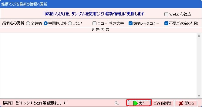 2.もし上記で[銘柄マスタを最新の情報へ更新]が実行されない場合