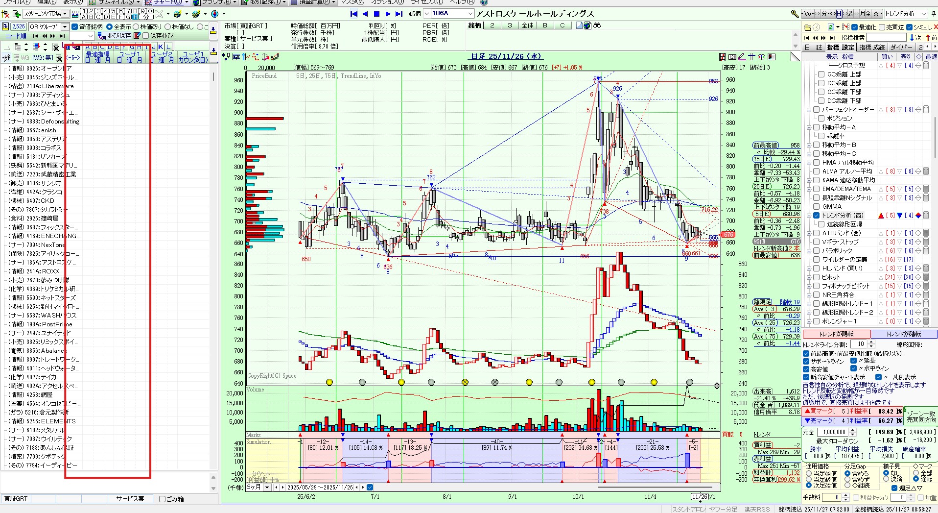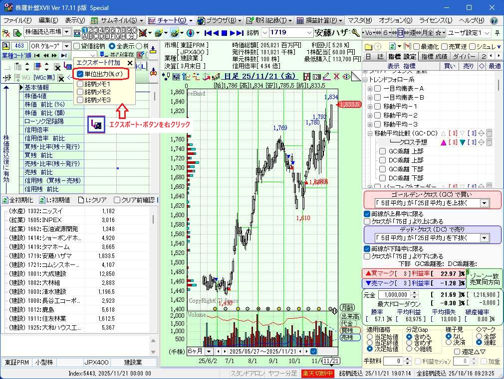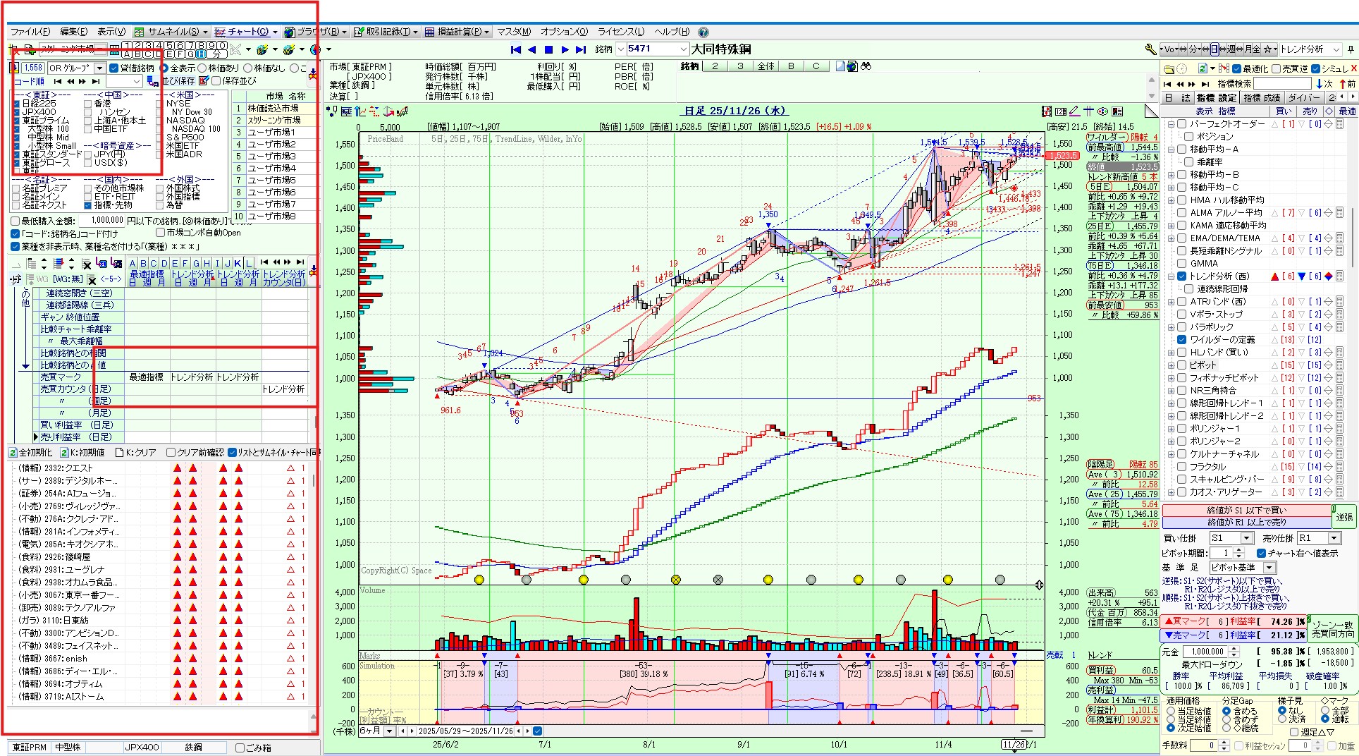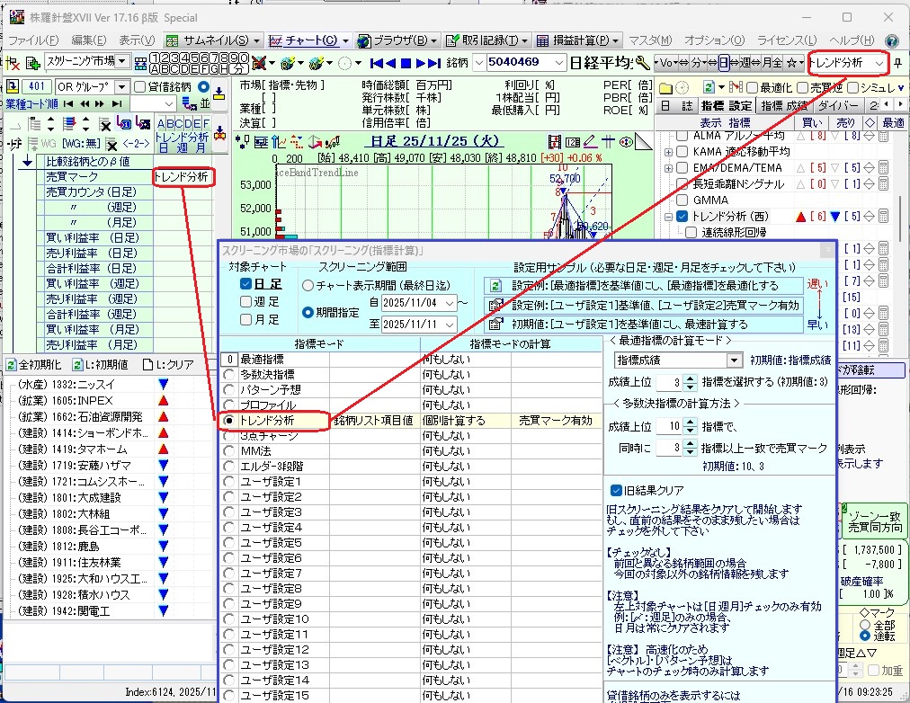 チャート設定で単一または複数の指標で売買サインが出ている銘柄群を保存する