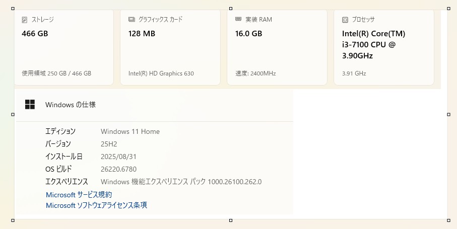 @パソコンのスペック画像を添付します。