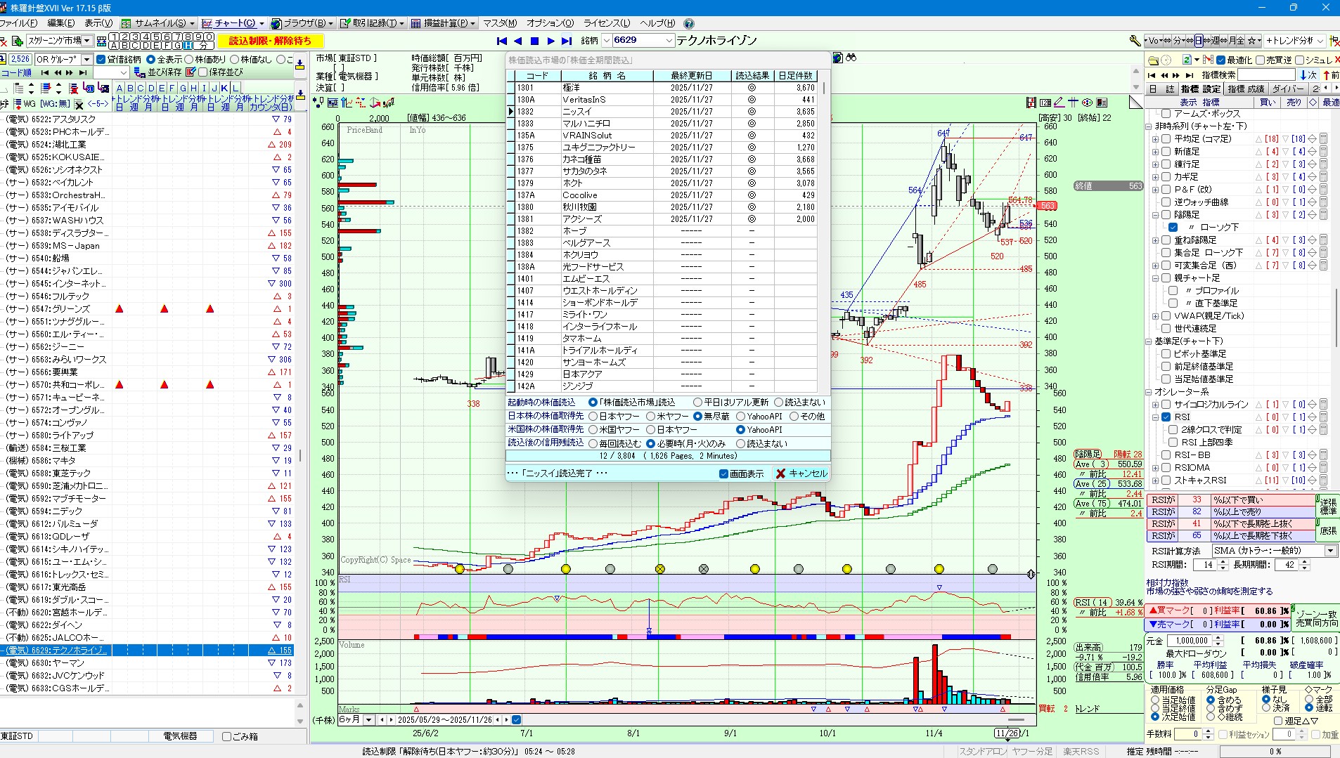 開発環境では、全市場の7500銘柄を数時間で読み込みます。