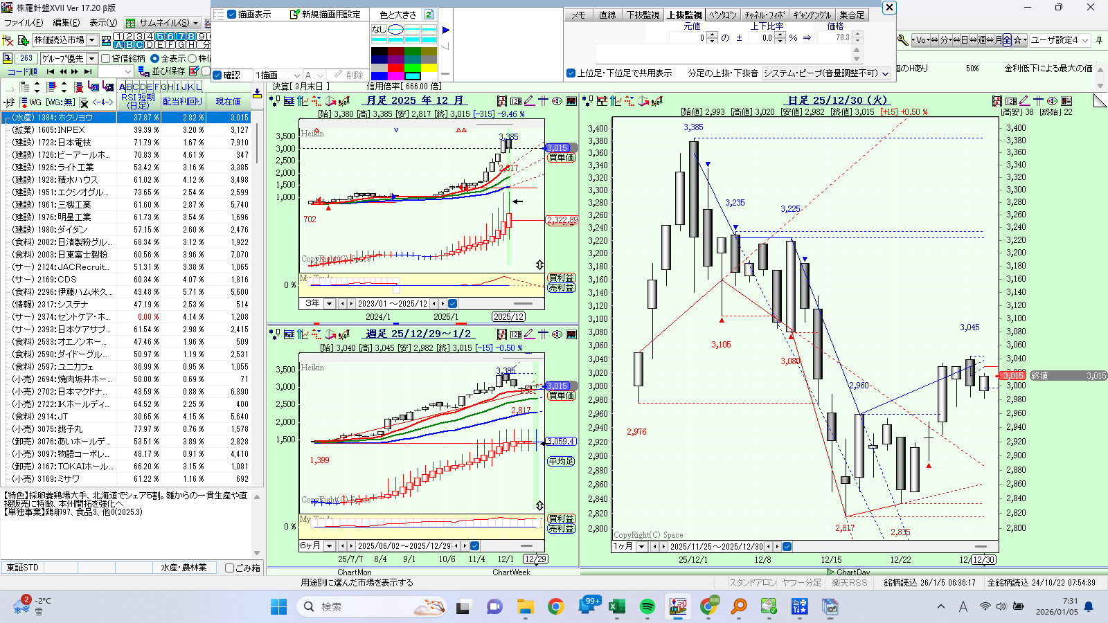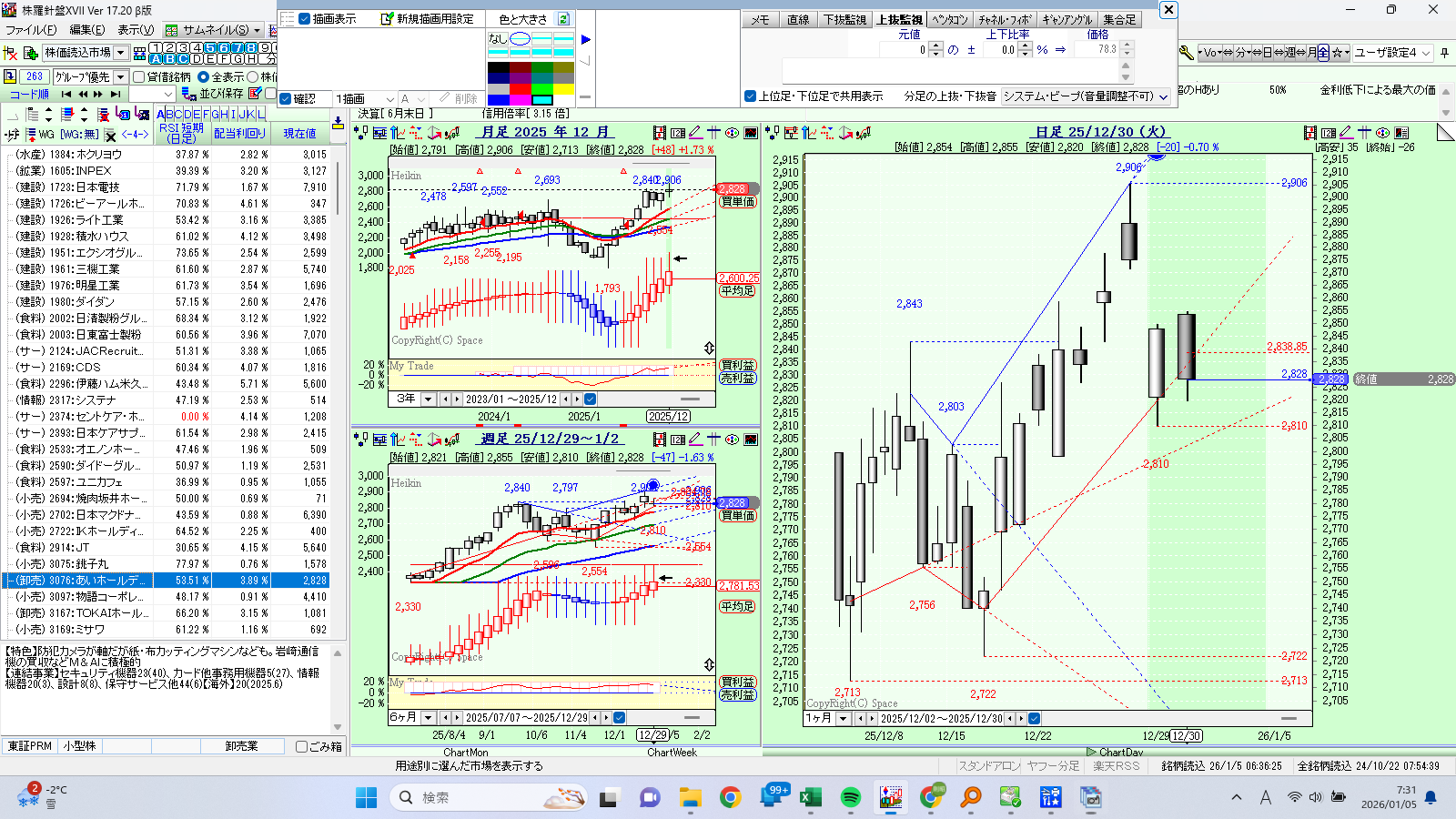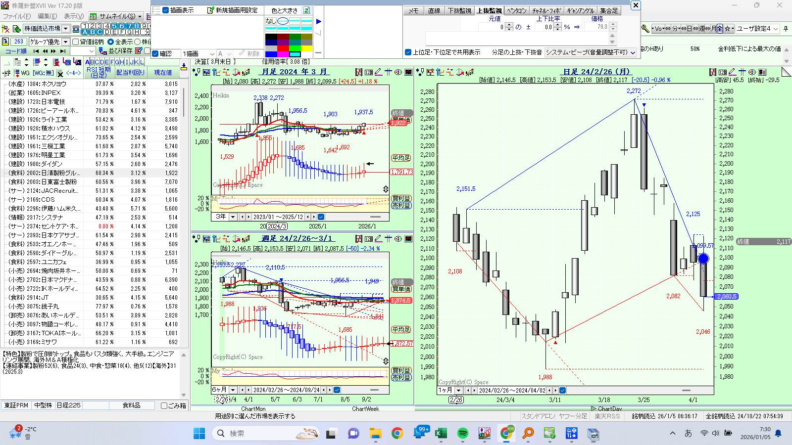 3.株羅針盤を起動し、上抜・下抜監視が出来ているか確認して下さい