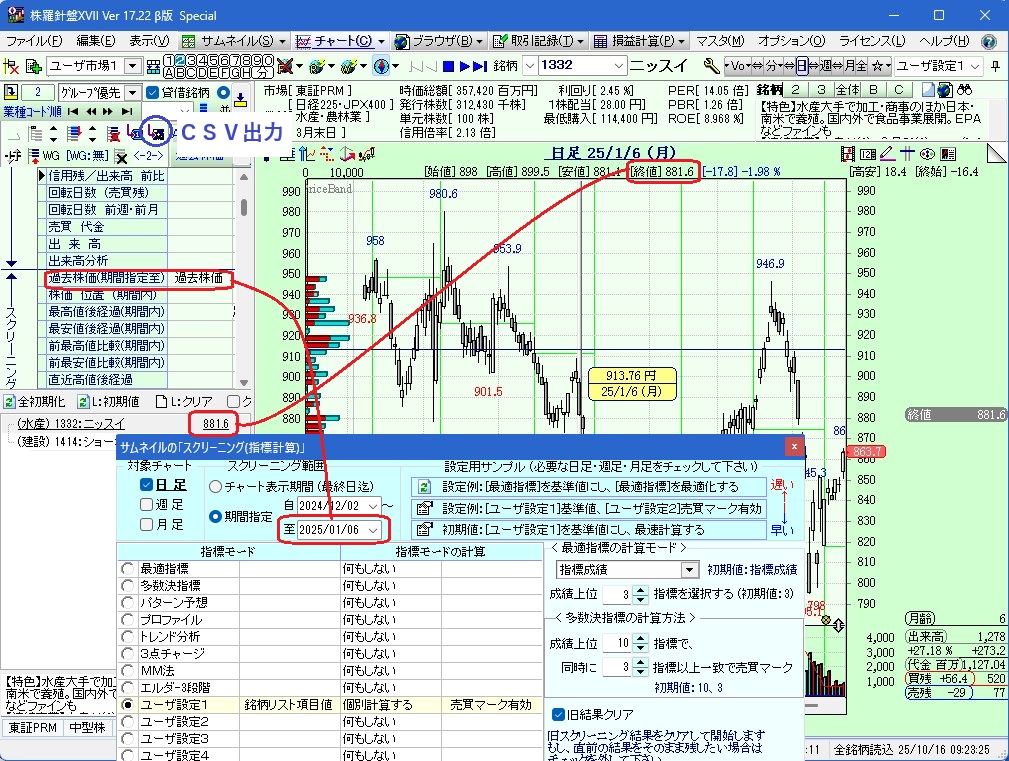 サムネイル銘柄の過去日付の株価リストをファイル出力する方法について
