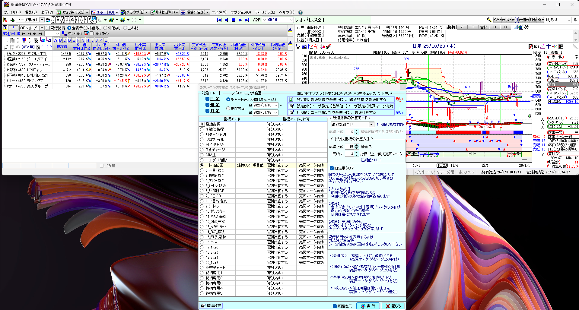 (以前の設定をそのまま使用したかったので、添付の画像ファイルのように指標を多く設定しています)