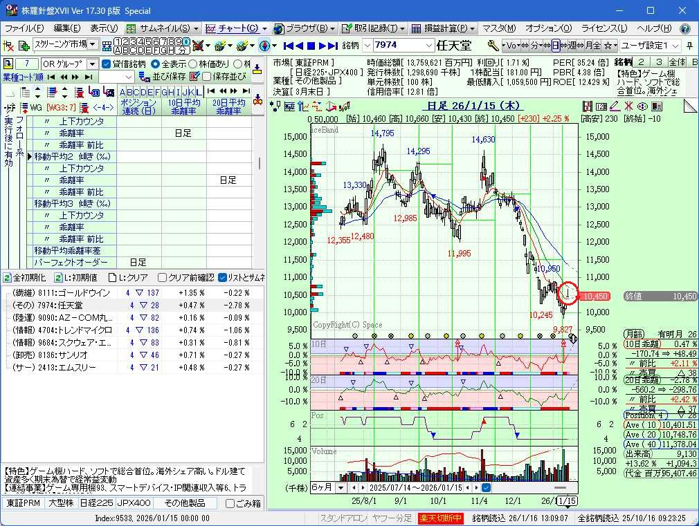 乖離率+の銘柄をWG登録する