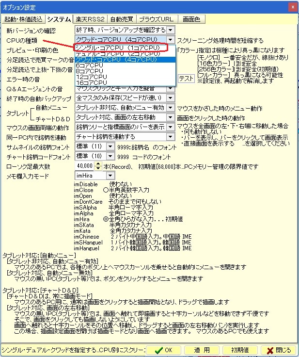2.オプション設定で[シングル・コア]に設定して確かめる