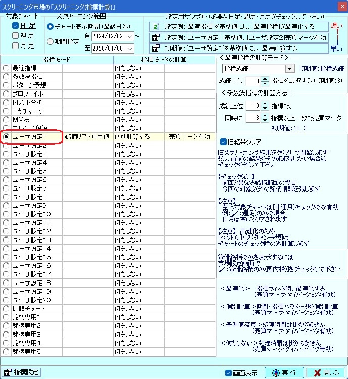 >これでした。[◎最適指標]を指定して、スクリーニングすると、フリーズしたように遅いです。