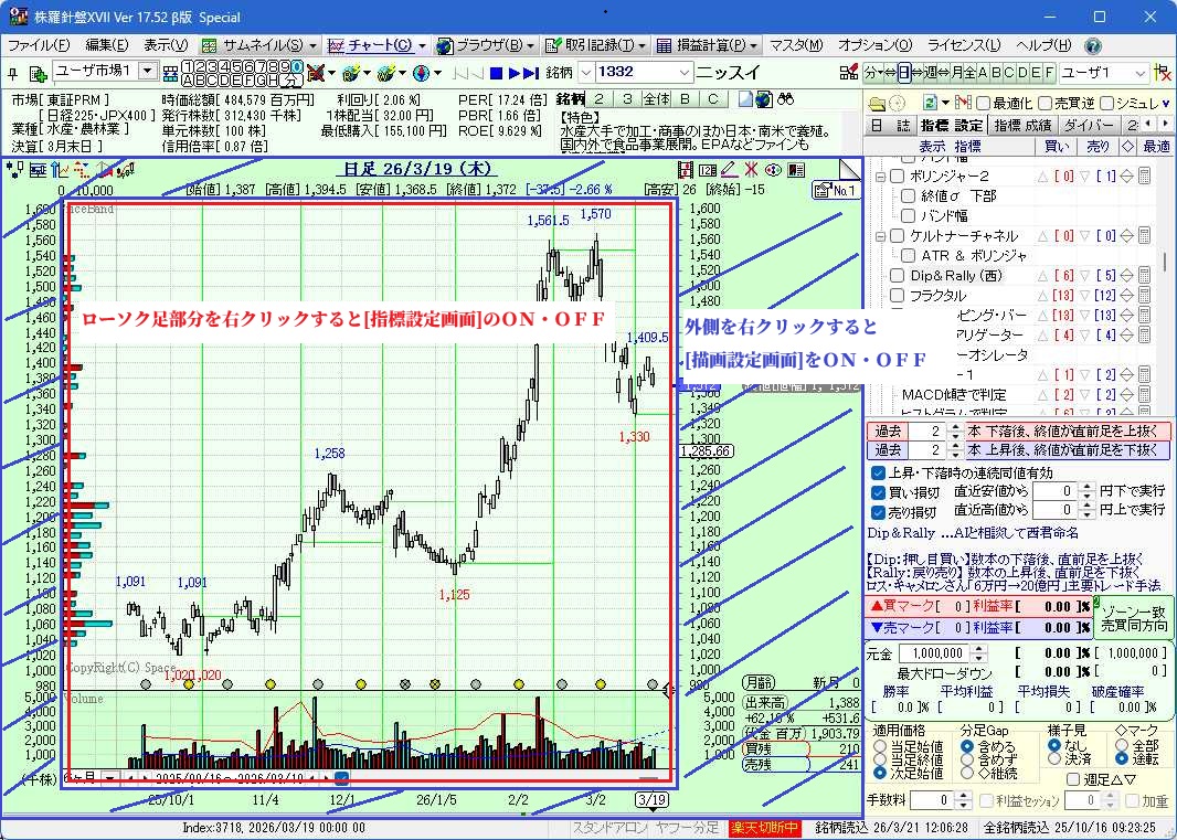 >>ローソク足以外の外側を右クリックすると[描画設定画面]をON・OFFします。