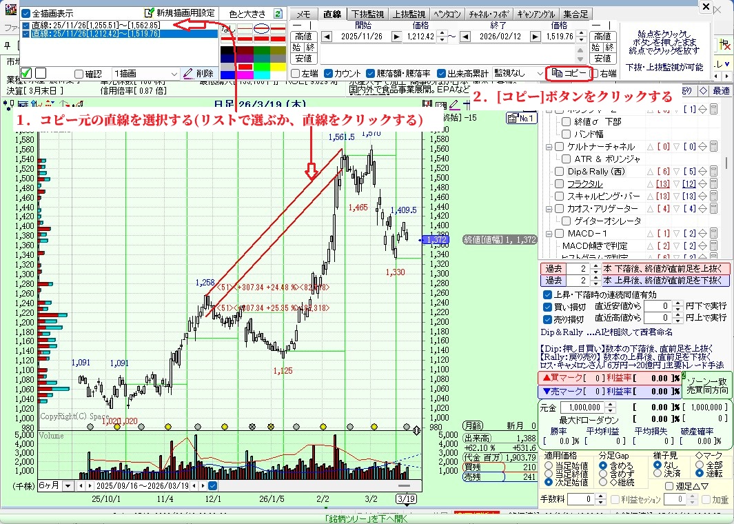 今回直線、水平線を多数の銘柄に引く場合少し時短になる提案させていただきます。