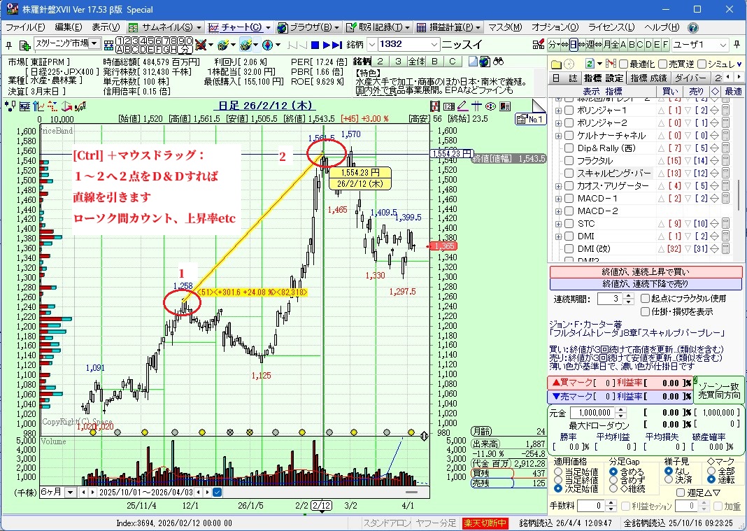 厳密に分析したい時は、[描画設定画面]や[指標設定画面]から描画します。