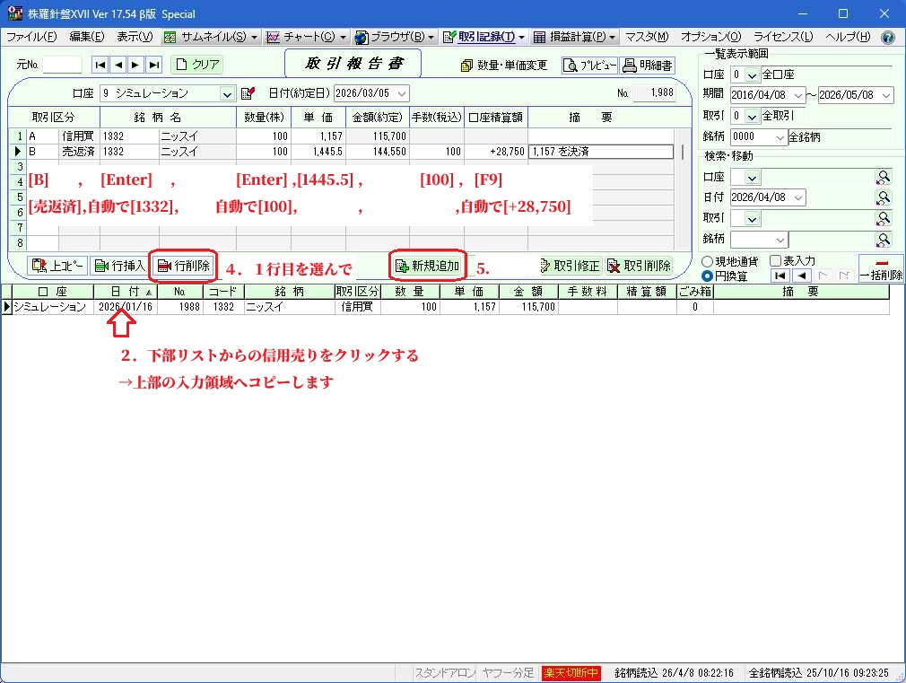 1.信用売りを入力する