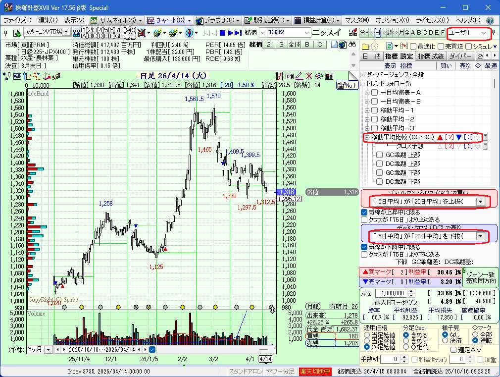 1-B.[移動平均比較(GC・DC)]の売買マークを設定し