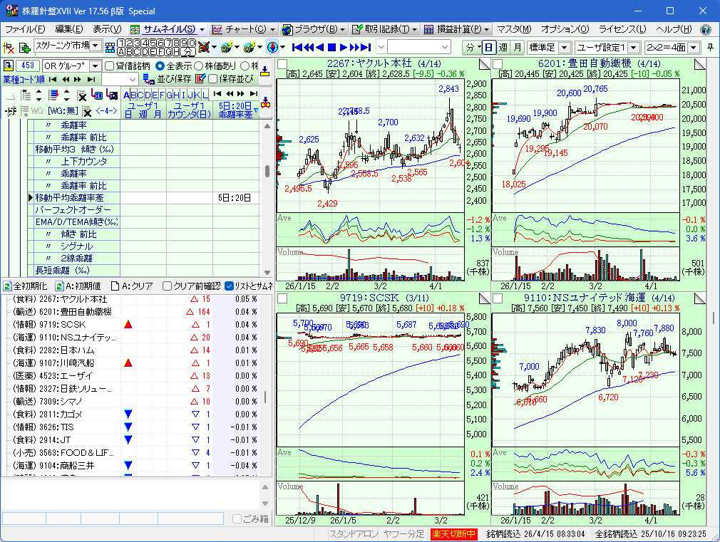 この方法は日足が平均線を越えた銘柄のスクリーニングかと思います。